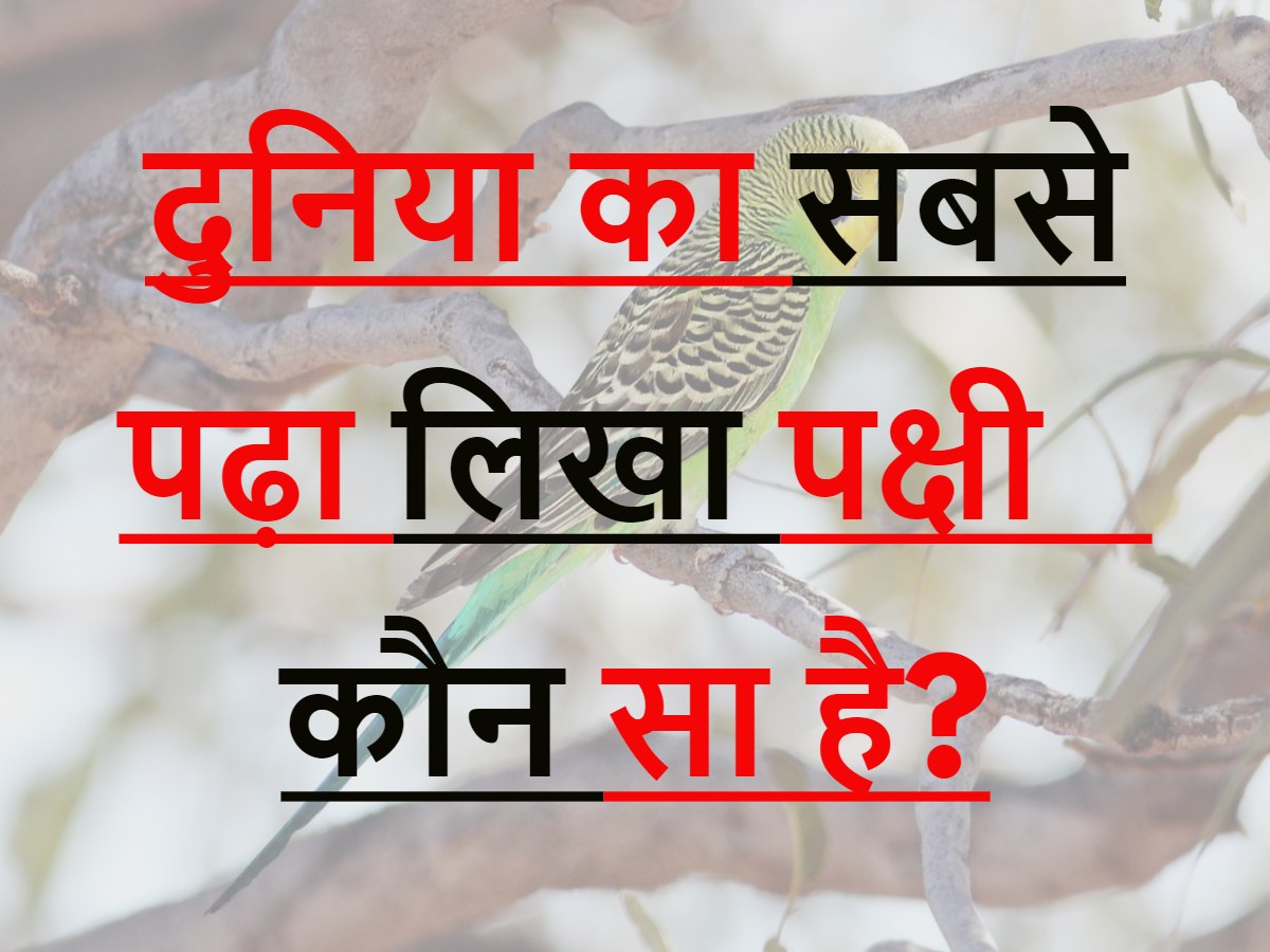 जवाब 5 - इसका नाम गिनिज बुक ऑफ वर्ल्ड रिकॉर्ड में भी दर्ज है. दुनिया का सबसे पढ़ा-लिखा पक्षी एक 'Puck' नाम का तोता ही है जिसके शब्दकोश में 1728 शब्द है.