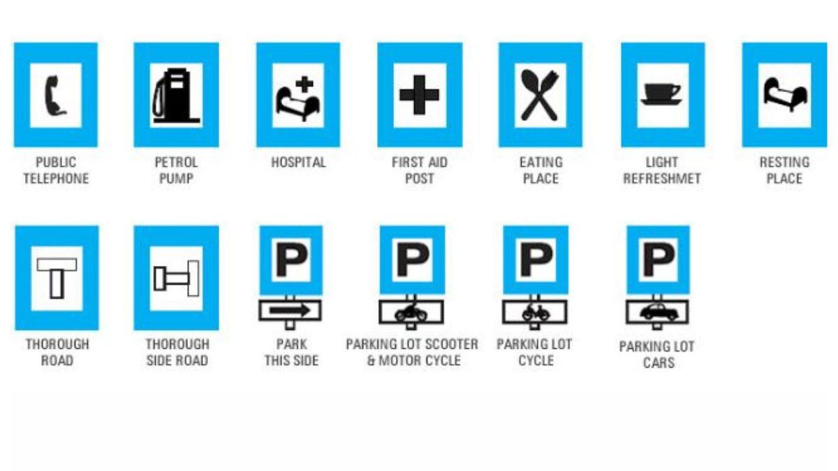 तीसरी कैटेगरी में आने वाले ट्रैफिक बोर्ड साइन में ड्राइवरों, साइकिल से चलने वाले और पैदल चलने वाले लोगों के लिए डिजाइन किया गया है। इस कैटेगरी में आने वाले साइन आमतोर पर नीले बैकग्राउंड के साथ सफेद रंग के टेक्सट के होते हैं। वहीं इनका आकार रैक्टेंगुलर होता है। इसमें पेट्रोल पंप, हॉस्पिटल, पार्किंग, रेस्टिंग प्लेस जैसी चीजों के बारे में बताया गया होता है।