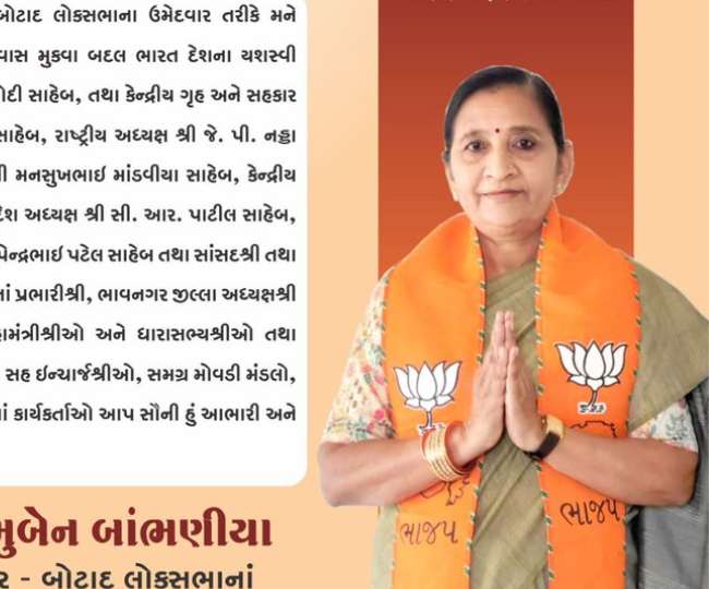 निमुबेन बंभानिया ने मंत्री पद की शपथ ली है। उन्होंने गुजरात की भावनगर लोकसभा सीट से बड़ी जीत दर्ज की है। उन्होंने आम आदमी पार्टी उम्मीदवार उमेश मकवाणा को साढ़े चार लाख से अधिक वोटों से हराया है।