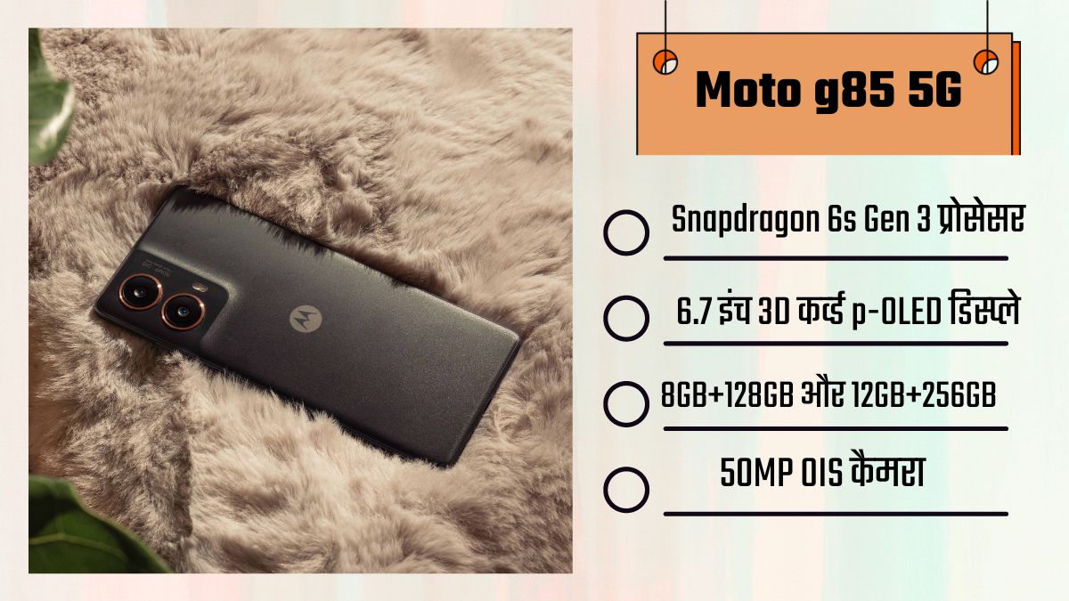 मोटोरोला ने अपने ग्राहकों के लिए G Series में एक नया मिड-रेंज फोन लॉन्च किया है। इस फोन को कंपनी ने दो वेरिएंट में पेश किया है। Moto G85 5G को तीन कलर ऑप्शन Cobalt Blue, Olive Green और Urban Grey में लाया गया है। आइए जल्दी से इस फोन के स्पेक्स और कीमत को लेकर डिटेल्स चेक कर लेते हैं-
