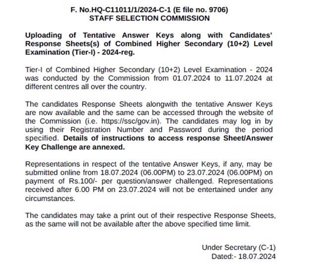 SSC CHSL Answer Key 2024: उत्तर कुंजियों पर 23 जुलाई तक दर्ज कराएं आपत्तियां