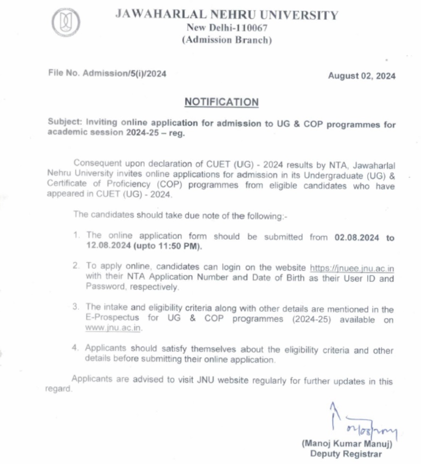 JNU Admission 2024: CUET UG से होगा एडमिशन