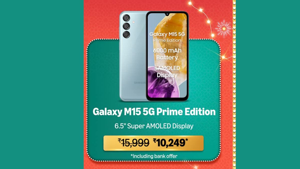 Galaxy M15 5G Prime Edition को Blue Topaz, Celestial Blue और Stone Grey कलर में खरीदा जा सकता है। फोन को अमेजन और सैमसंग की ऑफिशियल वेबसाइट से चेक कर सकते हैं। अमेजन से फोन को बैंक ऑफर के साथ 10,249 रुपये में खरीदने का मौका मिल रहा है।