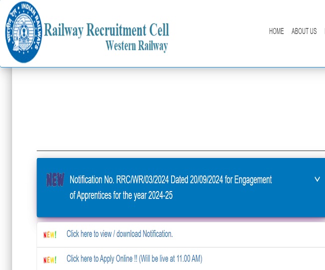 रेलवे रिक्रूटमेंट सेल (RRC) वेस्टर्न रेलवे की ओर से अप्रेंटिसशिप के बंपर पदों पर भर्ती निकाली गई है। इस भर्ती के लिए आवेदन प्रक्रिया 23 सितंबर से शुरू कर दी गई है। जो भी अभ्यर्थी 10वीं के साथ आईटीआई उत्तीर्ण हैं वे ऑनलाइन माध्यम से वेस्टर्न रेलवे की ऑफिशियल वेबसाइट rrccr.com पर जाकर आवेदन प्रक्रिया पूर्ण कर सकते हैं। इसके साथ ही आप इस पेज पर दिए डायरेक्ट लिंक से भी आवेदन प्रक्रिया पूर्ण कर सकते हैं। एप्लीकेशन फॉर्म भरने की लास्ट डेट 22 अक्टूबर 2024 तय की गई है।