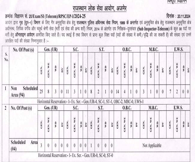आरपीएससी एसआई टेलिकॉम (RPSC SI Telecom Vacancy 2024) पदों पर आवेदन के लिए अभ्यर्थी का देश के किसी भी मान्यता प्राप्त विश्वविद्यालय/ संस्थान से फिजिक्स एवं मैथमेटिक्स विषयों के साथ बीएससी उत्तीर्ण किया हो या टेलीकम्युनिकेशन/ इलेक्ट्रॉनिक्स/ इलेक्ट्रिकल इंजीनियरिंग से बीई/ बीटेक या इसके समकक्ष पास होना आवश्यक है। इसके साथ ही अभ्यर्थी की न्यूनतम आयु 20 वर्ष से कम और अधिकतम आयु 25 साल से ज्यादा नहीं होनी चाहिए। आयु में आरक्षित वर्ग को नियमानुसार छूट दी गई है। ध्यान रखें कि आयु की गणना 1 जनवरी 2025 के अनुसार की जाएगी।RPSC SI Telecom Notification डाउनलोड करने के लिए यहां क्लिक करें।.jpg)